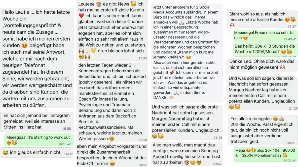 Dank Leo habe ich als Mama von zwei kleinen Jungs in nur zwei Monaten meine ersten Kunden gewonnen und endlich mein eigenes Geld verdient. Heute baue ich mir mein unabhängiges Business auf.